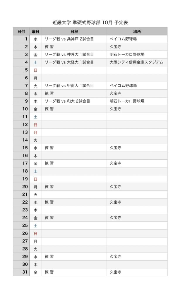 10月 予定表