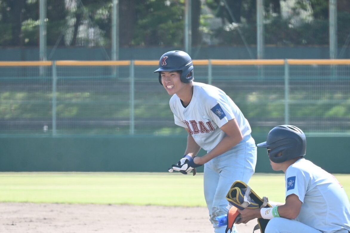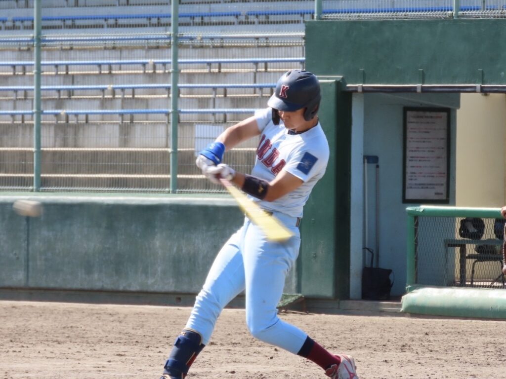 4回表⠀先頭 二村快晴(近大新宮・2)が四球で出塁する。失策で無死2.3塁となり、林亮介(四條畷・3)の犠飛で1点追加する。