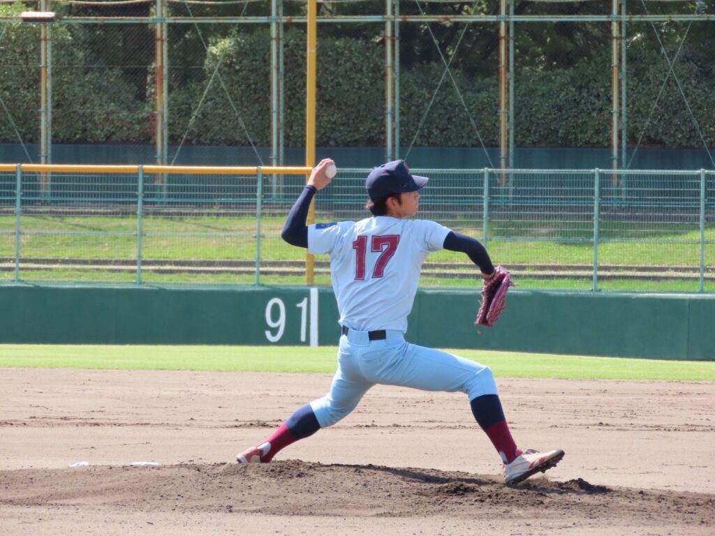 1回表⠀1死から2番 二村快晴(近大新宮・2)が中安打で出塁する。続く3番 砂川侑軌(鳳・2)が右安打、4番 山崎僚也(市和歌山・3)が左適時2塁打で先制する。四球の後、6番 下村直輝(報徳学園・3)の二ゴロの間に1点追加する。2死となるも2つの捕逸で3点追加する。