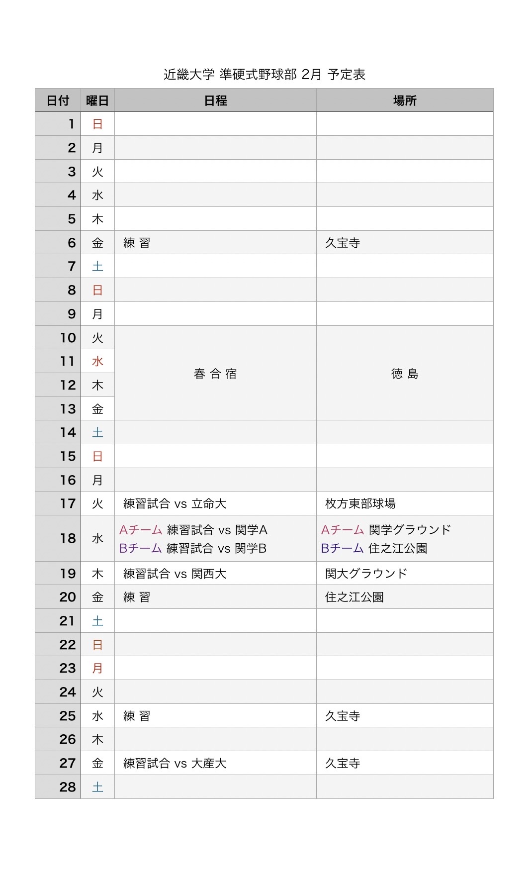 2月 予定表 2026年Screenshot 2026.02.05 Screenshot いつも温かいご声援をいただき、誠にありがとうございます。 今シーズンもチーム一丸となり全力で取り組んでまいりますので、引き続きご声援のほどよろしくお願いいたします🙇🏻♀️
