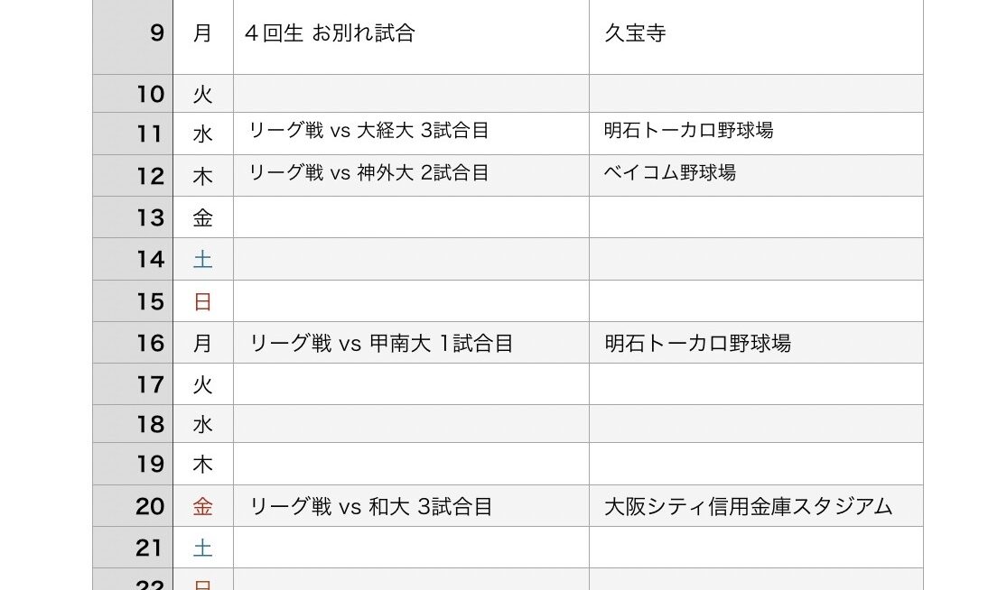 令和5年度近畿六大学準硬式野球秋季リーグ戦