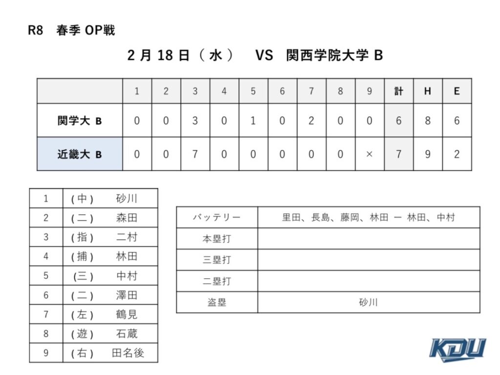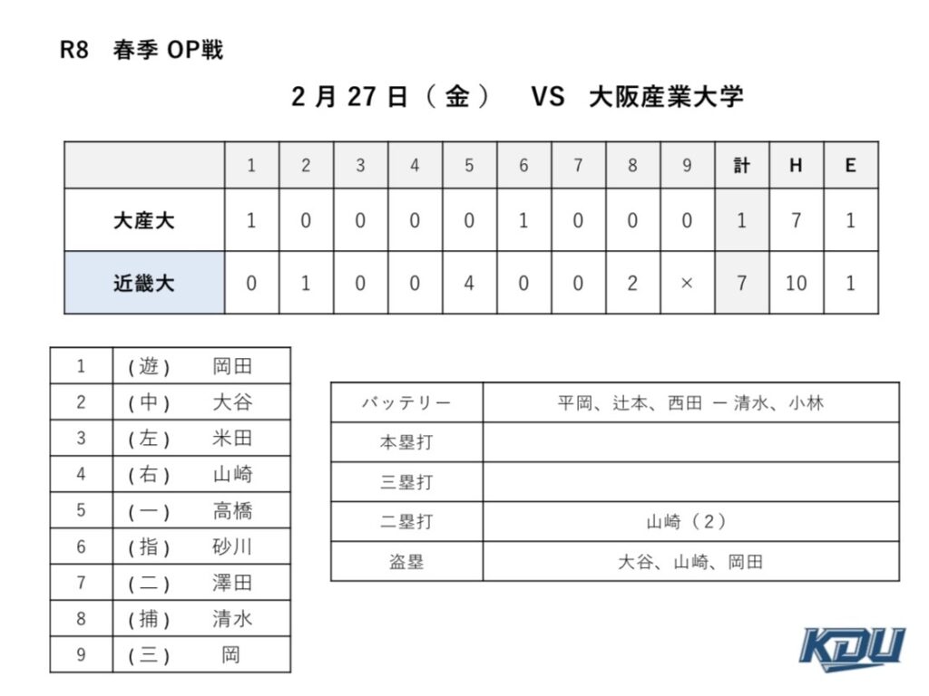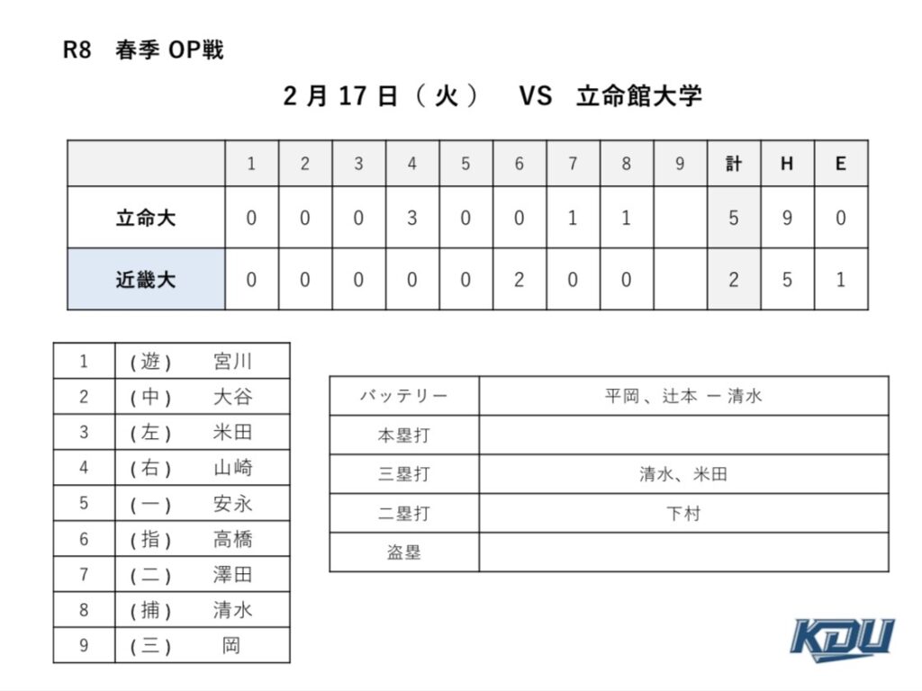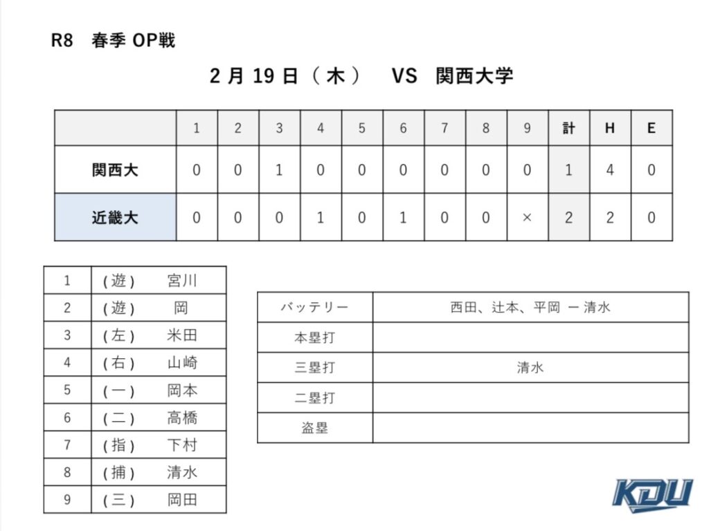 R8 春季OP戦結果 練習試合 2026.03.12 春季オープン戦の結果を掲載しております。 対戦していただいた各大学の皆さま、ありがとうございました。 Screenshot Screenshot Screenshot Screenshot Screenshot